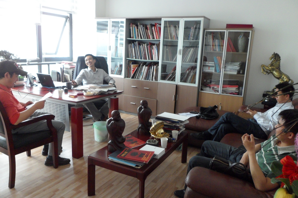 曾望求副会长与会员李伟国和朱红色初步沟通交流。