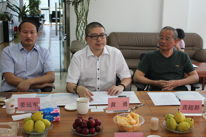 黄勇会长首先对陈主席、彭主席一行冒着酷暑到我会调研表示欢迎和感谢。黄会长说,十八大以来,从中央到地方都非常重视非公组织的发展,让我们感到很温暖,也备感责任重大。接着黄会长介绍了近两年来我会在商会机构改革、活动组织、促进湘浙两地经贸往来、公益慈善等方面开展的主要工作。同时,黄会长也表示,商会通过近些年的努力,团队越来越大,口啤越来越好,活力越来越强,在浙江省内举办的重大活动中崭露头角,为在浙湘商争得了荣誉,我们也将在商会党建工作、促进会内项目合作等方面加大力度,把商会工作推到一个新的高度。