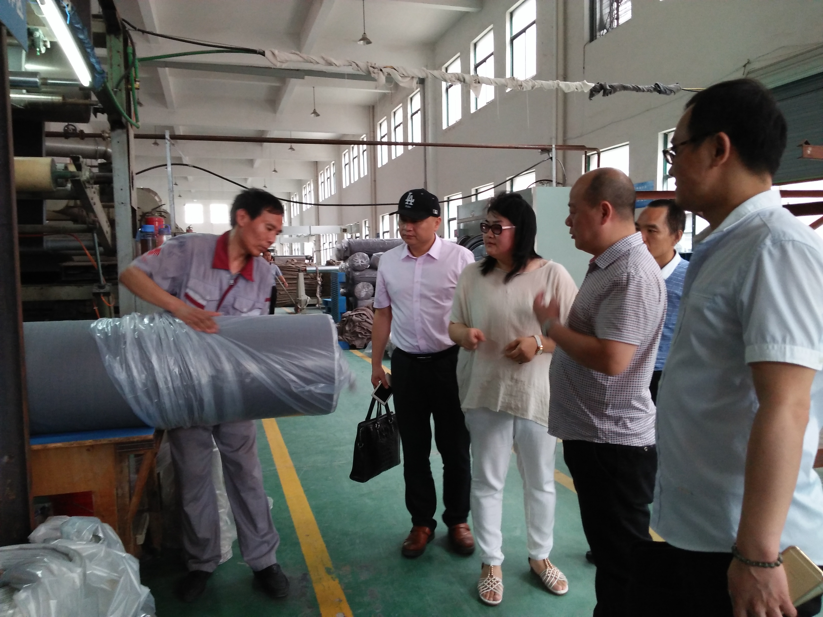 在抵达振基后,齐总首先带领大家参观了振基生产工厂,并详细为大家介绍了生产工艺、生产技术。振基主要制造、加工、销售装饰布、窗帘布、沙发布、床上用品、其他纺织;另外,经营振基自产产品的出口业务和生产所需的原辅材料、机械设备及技术的进口业务。