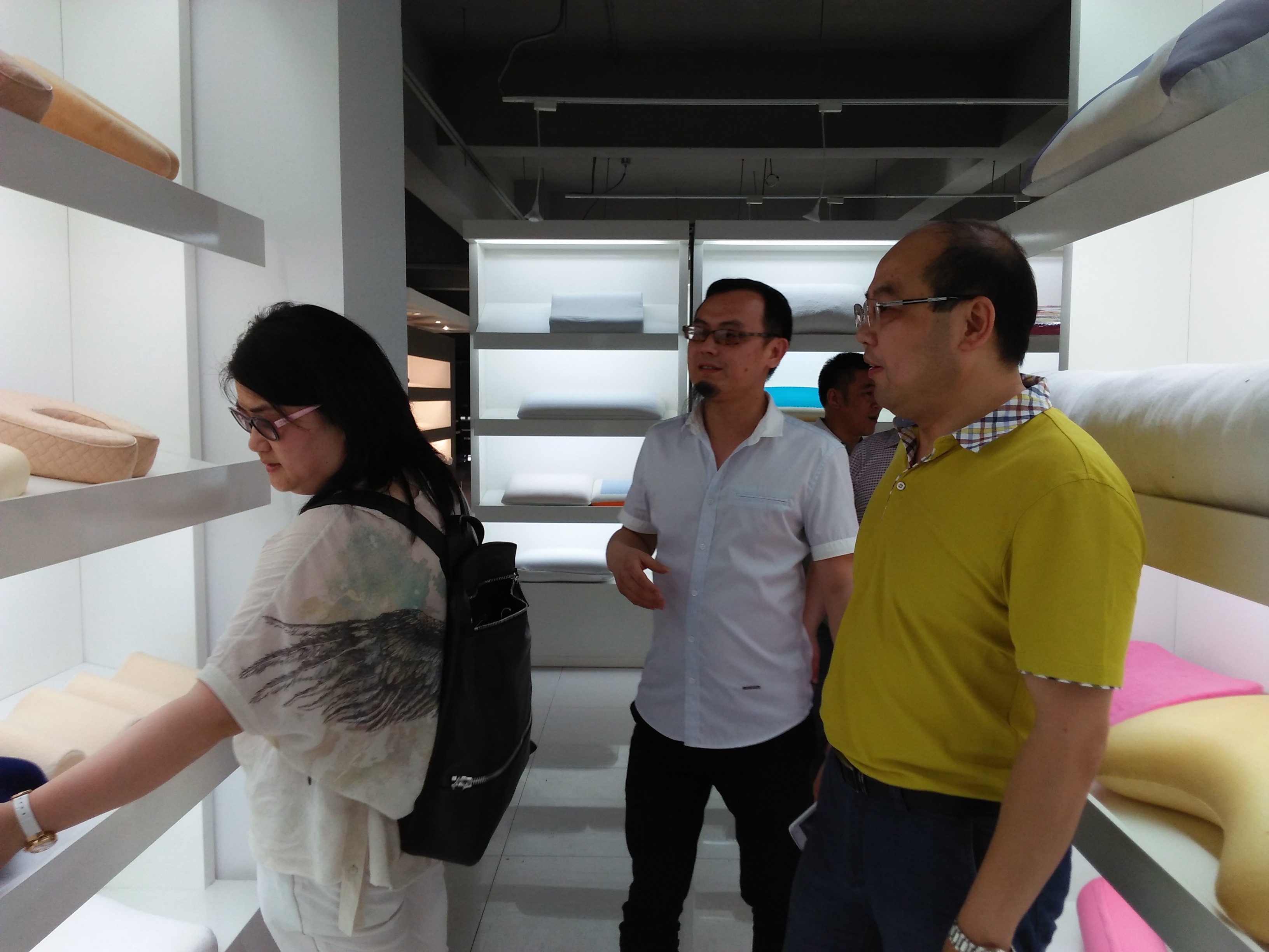 在公司员工的陪同下,大家走进宝庆隆的门面店,参观了实用印花材料和样品。宝庆隆印花成立于2010年,集研发、生产和销售于一体的专业印花材料生产厂商,主要经营印花材料、植绒浆、烫金浆、隔离浆等产品。